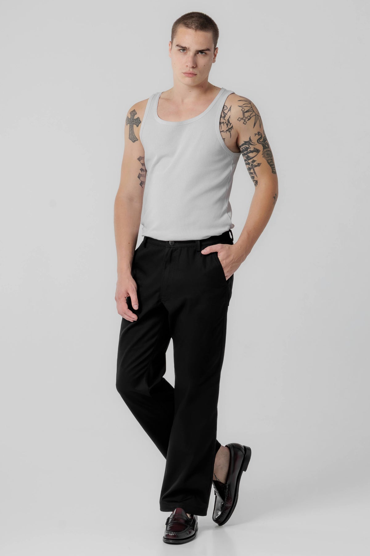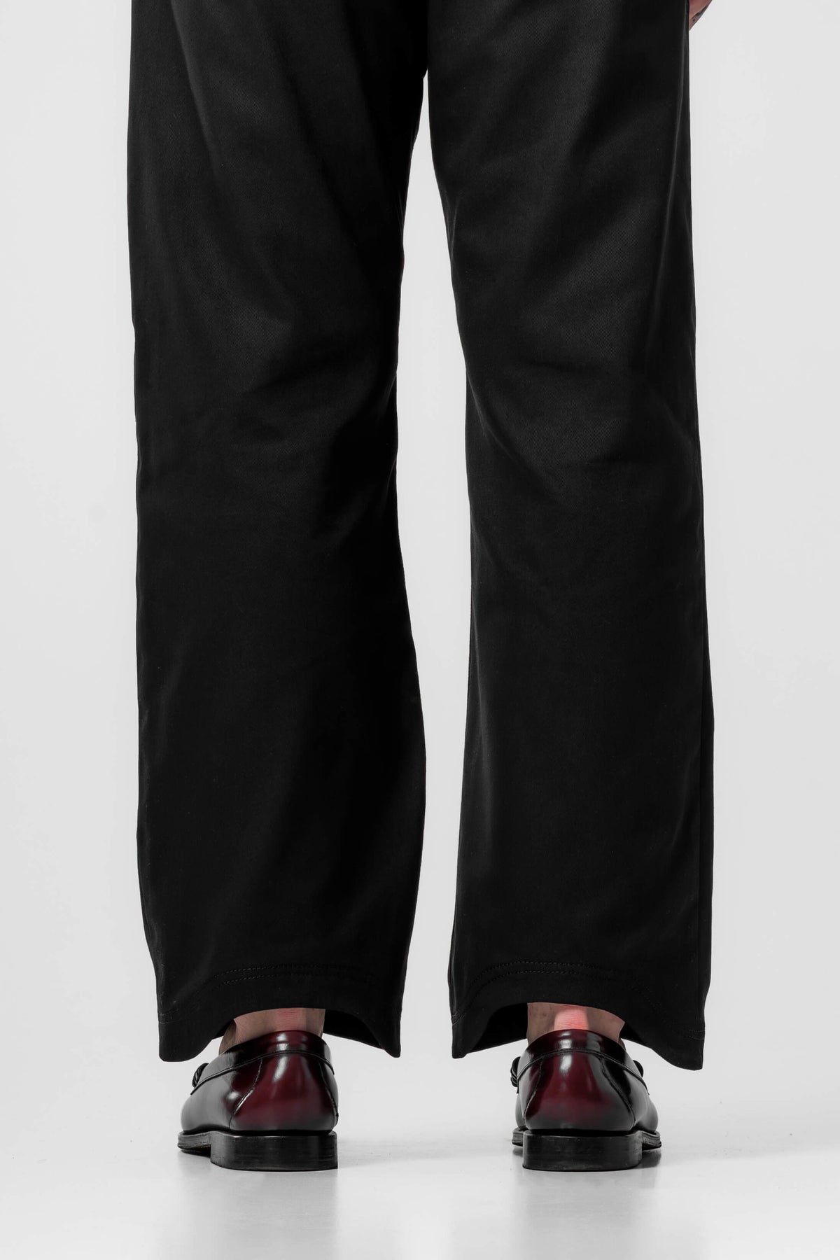 Made from breathable cotton canvas, these pants deliver structure without sacrificing comfort. The clean silhouette is elevated by a subtle curved detail at the bottom of the leg.