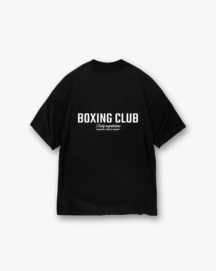 Short sleeve jersey t-shirt in black. Slightly oversized fit in a medium weight cotton. This t-shirt features our Boxing Club print to the back.